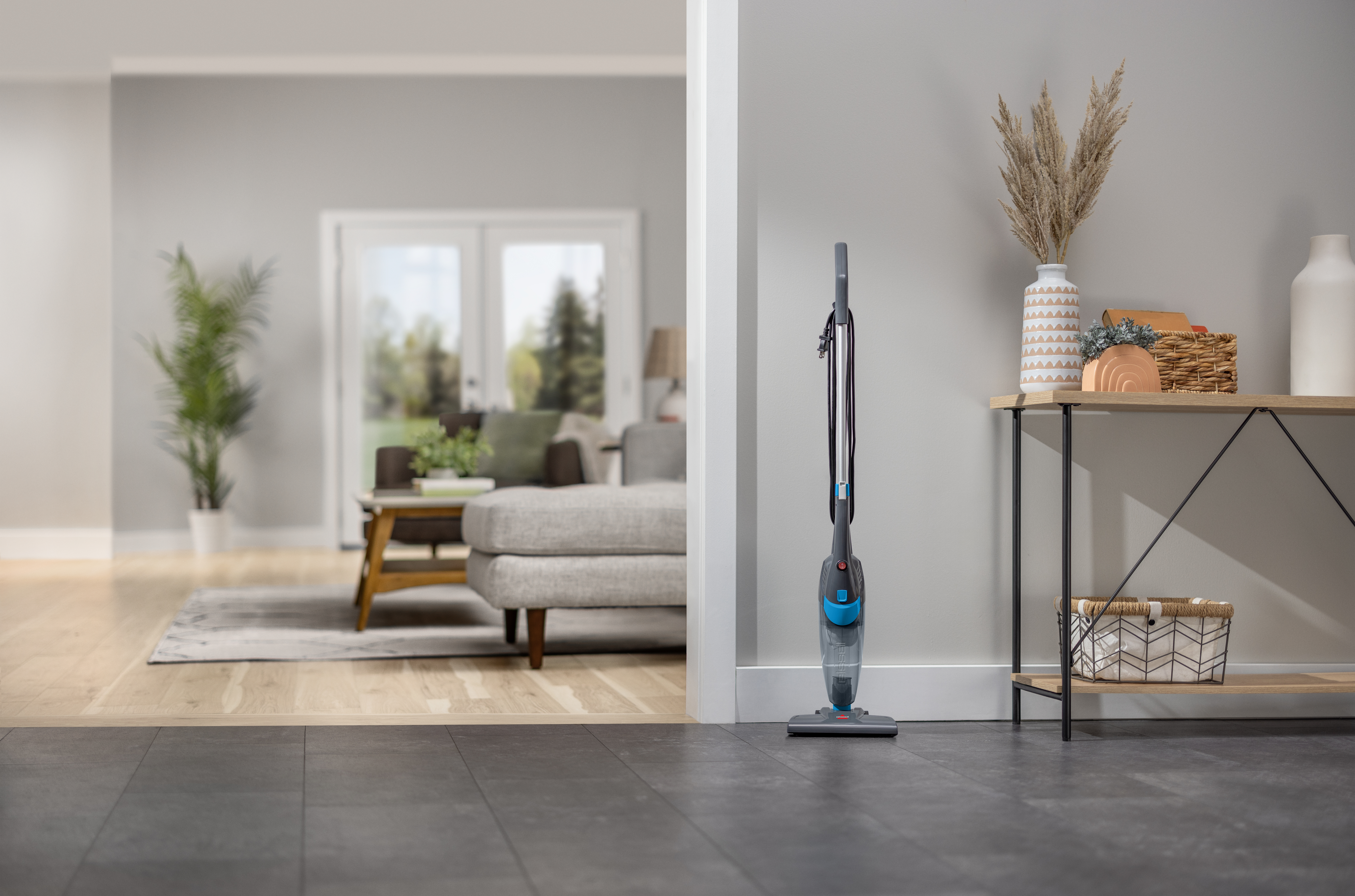 The FeatherWeight™ weighs less than 2Kg and can easily be carried around the house. It provides powerful suction in all three modes. Its powerful suction makes it perfect for quick cleanups and multi-purpose cleaning. This multipurpose stick vacuum easily converts into 3 different machines. Use it as an upright stick vacuum on carpet & hard floors, use it as a hand vacuum on above floor spots & use it as a stair vacuum to make vacuuming stairs easier. Enjoy convenient and powerful cleaning as this stick vacuum was designed to be your go-to vacuum for easy cleaning throughout your home. The FeatherWeight™ is suitable for hard and carpeted flooring. It includes a crevice tool for the furniture and a floor nozzle for the stairs. It cleans up dirt and debris on carpets, area rugs and hard floors. The FeatherWeight™ is a bagless vacuum cleaner which makes it very easy to empty. When you’re done vacuuming, maintenance and storage is a breeze with the EasyEmpty ™ Dirt Tank and easy-to-wrap cord.